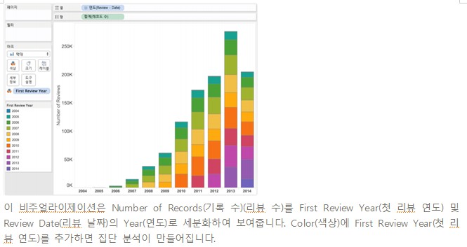 즉, First Review Year (첫 리뷰 연도)가 뷰에서 차원으로 사용되습니다.