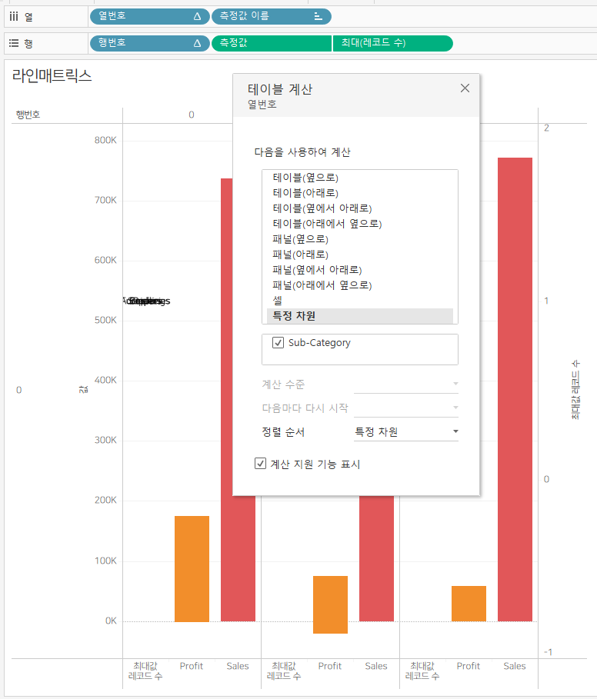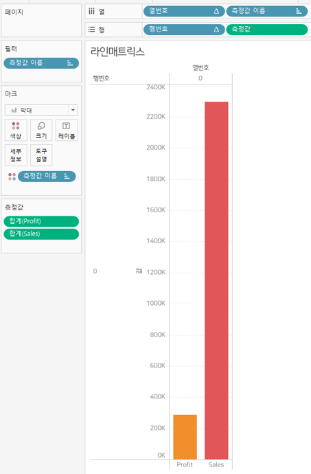 3. 계산식으로 만든 [행번호], [열번호] 및 [Sales], [Profit]을 아래와 같이 올려주세요.