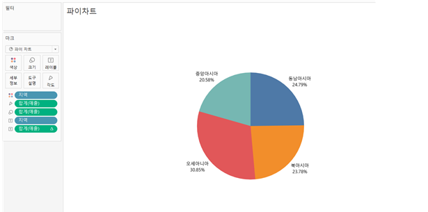 또한 매출값이 아니라 지역 전체 값에 대한 구성 비율로도 나타낼 수 있습니다.