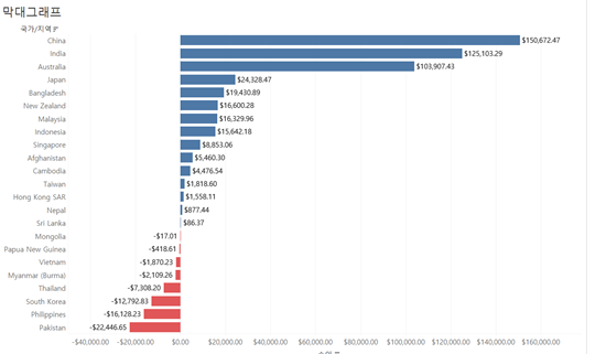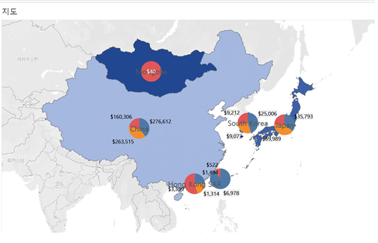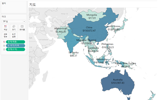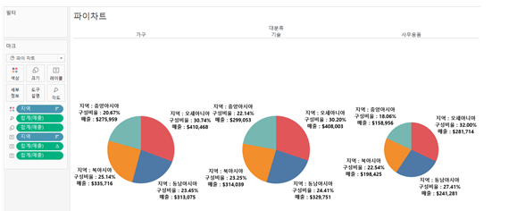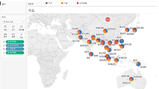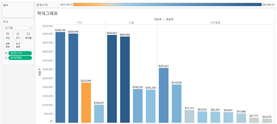또한 수익을 색상으로 표현하여 가구의 테이블 분야는 수익이 -인 것을 파악할 수 있습니다.